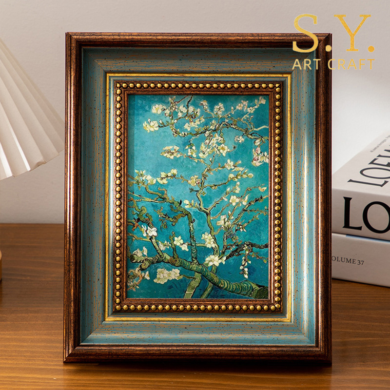 Çerçeve, gözleri ekranınıza çeken hassas altın boncuklardan oluşan merkezi bir kenarlığa sahip, karmaşık katmanlı bir yapıya sahiptir. Mavi iç katman, çok boyutlu, lüks bir görünüm yaratmak için sıcak antika kahverengi dış çerçeveyle eşleştirilen, hafif eskitilmiş bir dokuyla tamamlandı. Kolay kurulum ve toza ve hasara karşı koruma sağlayan pürüzsüz bir arkalık ile standart boyutlu sanat eserlerini veya fotoğrafları güvenli bir şekilde tutacak şekilde tasarlanmıştır. Elle işlenmiş dokusundaki detaylara verilen önem, her çerçeveye seri üretilen alternatiflerden öne çıkan benzersiz, zanaatkar bir kalite kazandırır.
